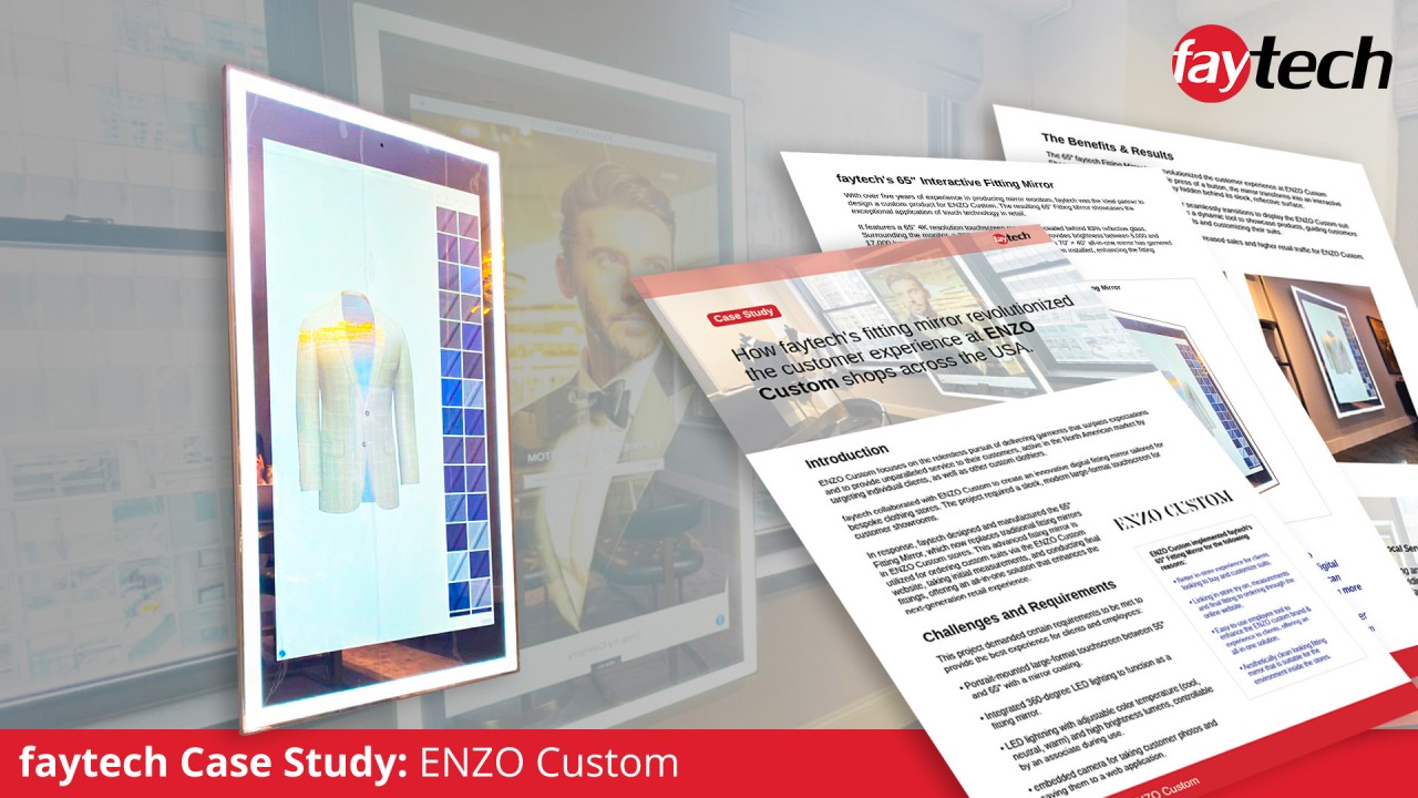 Revolutionizing the retail experience! See how faytech's 65" interactive fitting mirror transformed ENZO Custom's stores across the USA. This isn't just a mirror; it's a fully interactive sales tool boosting engagement and sales.