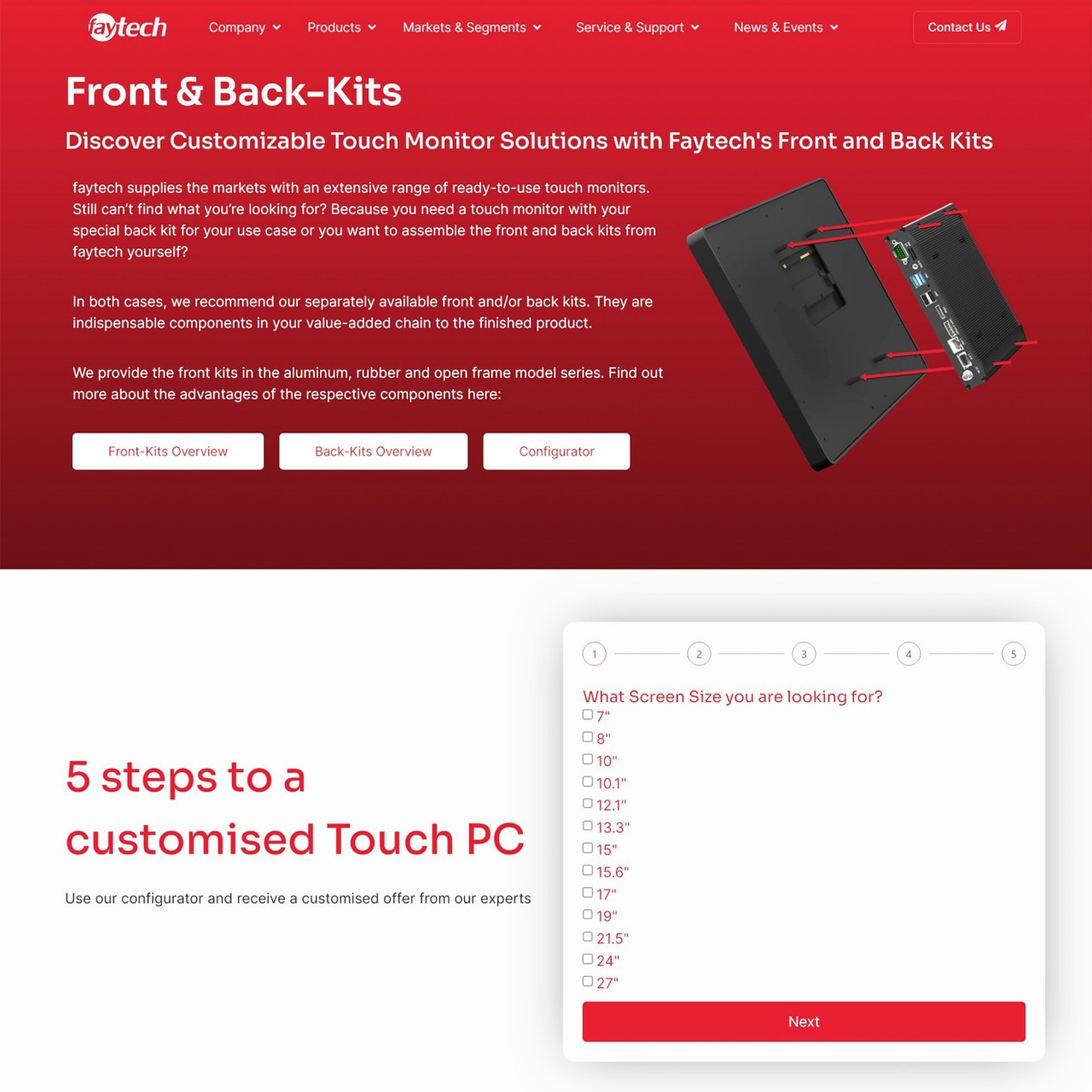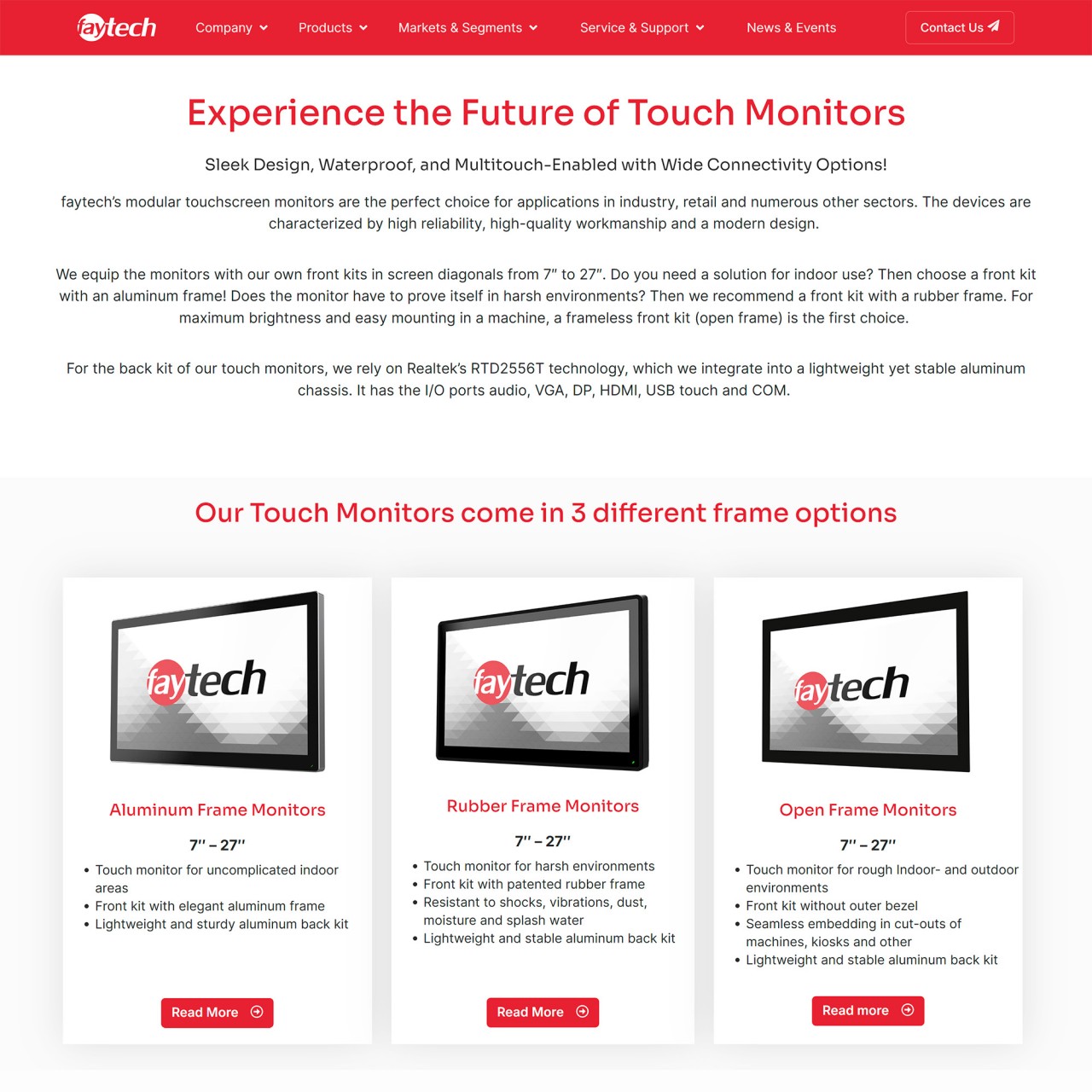 Whether you’re looking for a 7" ARM A311D Touch PC with a rubber frame, a 15.6" Aluminum Frame monitor, or a 27" open frame x6413E touch PC, faytech has the ideal solutions for your application! Reach out to us today to learn more about our offerings or visit our product page directly.