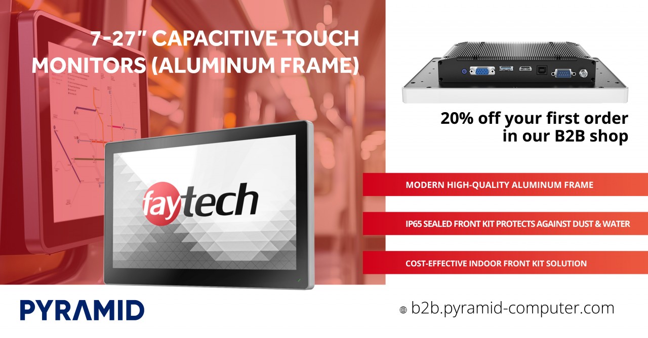 faytech's touch monitor line-up offers a variety of frame options, including rubber frames, open frames, and cost-effective aluminum frames.