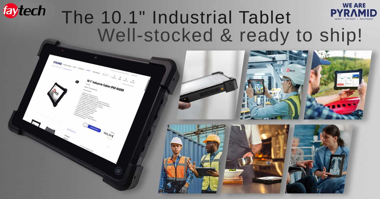 Well-stocked and ready to ship from our European warehouse! Our faytech® 10.1" Industrial tablet is built to withstand the harshest environments, featuring IP65-rated protection, optically bonded touch panels, and durable construction.