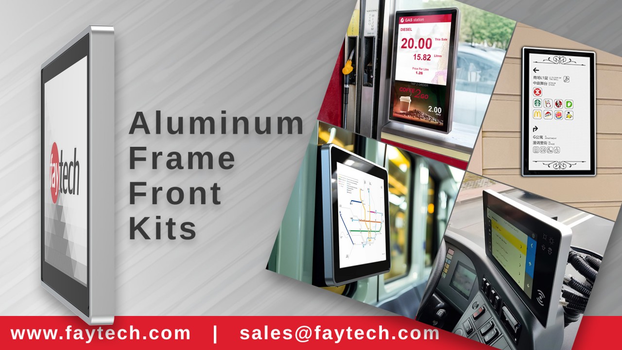 Offered in a range of sizes from 7" to 27", faytech's Aluminum Frame Fronts are perfect for applications where design and performance are paramount. Experience a blend of elegant design and dependable functionality—choose our aluminum frame solutions today!